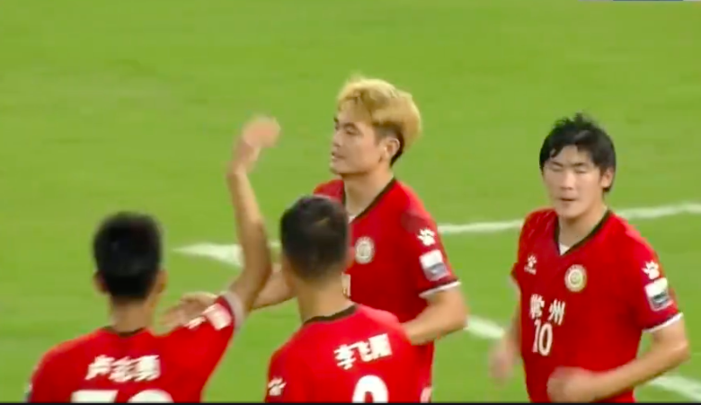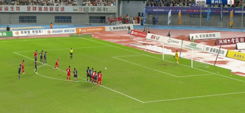 第85分钟,泰州队再次错失良机,巴特头球攻门击中立柱内侧,随后门将将球没收。