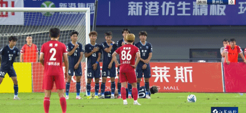 第39分钟,黄紫昌定位球直接打门,泰州队门将戴曜城将球扑出。
