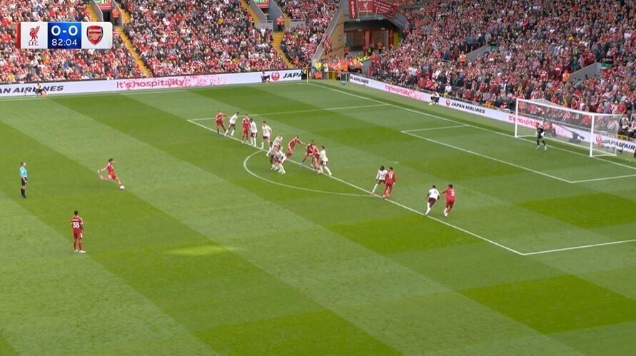 中场休息之后,利物浦加强了进攻,逐渐创造出机会。比赛的第82分钟,索博斯洛伊主罚前场中路任意球左脚劲射破门,1比0!